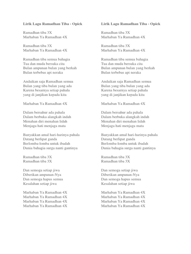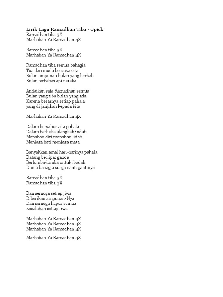 Lirik Nasyid Marhaban Ya Ramadhan By fu_Finley51 04 Apr, 2022 Post a Comment Lirik Lagu Pdf Lirik Lagu Ahlan Wasahlan Ya Ramadhan Pdf Lirik Lagu Ramadhan Tiba Pdf Lirik Lagu Ramadhan Tiba Pdf Share No comments for "Lirik Nasyid Marhaban Ya Ramadhan"